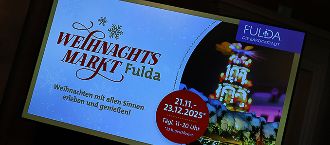 Die Verantwortlichen der Stadt Fulda haben turnusgemäß zum Programm des diesjährigen Fuldaer Weihnachtsmarktes (21. November bis 23. Dezember 2025) informiert. In diesem Jahr wartet der Markt, der inzwischen neben dem traditionellen Weihnachtsmarkt auf Fuldas Herzstück, dem Universitätsplatz, genau genommen sechs Themenmärkte umfasst, informiert. Neben dem Altbewährten setzen Bürgermeister Dag Wehner (CDU) und Dominik Höhl vom Tourismus- und Marketingmanagement bewusst auf attraktive Neuerungen. Als neue Attraktion soll ein 15 Meter hohes Riesenrad über dem Universitätsplatz vorweihnachtliche Stimmung verbreiten.