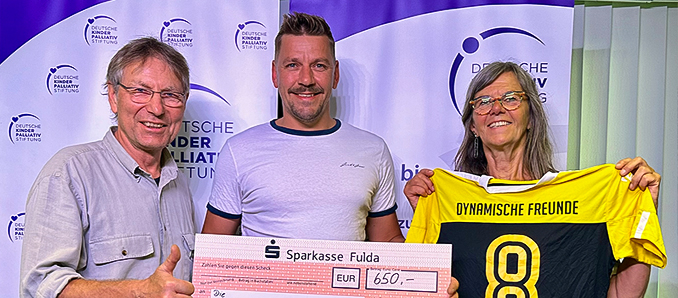 Die Deutsche PalliativStiftung freut sich über eine großzügige Spende von 650 Euro, die anlässlich des Abschiedsspiels des Fußballers Robby Neuhäußer gesammelt wurde. Der 41-jährige Neuhäußer, eine lokale Fußballlegende, die unter anderem für Borussia Fulda, Künzell, Pilgerzell und den TSV Bachrain spielte, verabschiedete sich am 15. Juni offiziell vom aktiven Fußball. Bei dem Abschiedsspiel, dass von Mitspielern, Weggefährten, Familie und Freunden besucht wurde, nutzte Neuhäußer die Gelegenheit, um auf die wichtige Arbeit der Deutschen PalliativStiftung aufmerksam zu machen. Die feierliche Spendenübergabe erfolgte am 8. August an Dr. Thomas Sitte und Angelika Reith, Vertreter der Deutschen PalliativStiftung. Die Deutsche PalliativStiftung bedankt sich herzlich bei Robby Neuhäußer und allen Spendern für ihr Engagement. Solche Initiativen helfen uns, die Öffentlichkeit für das Thema Palliativversorgung zu sensibilisieren und unsere Arbeit fortzuführen. +++ pm