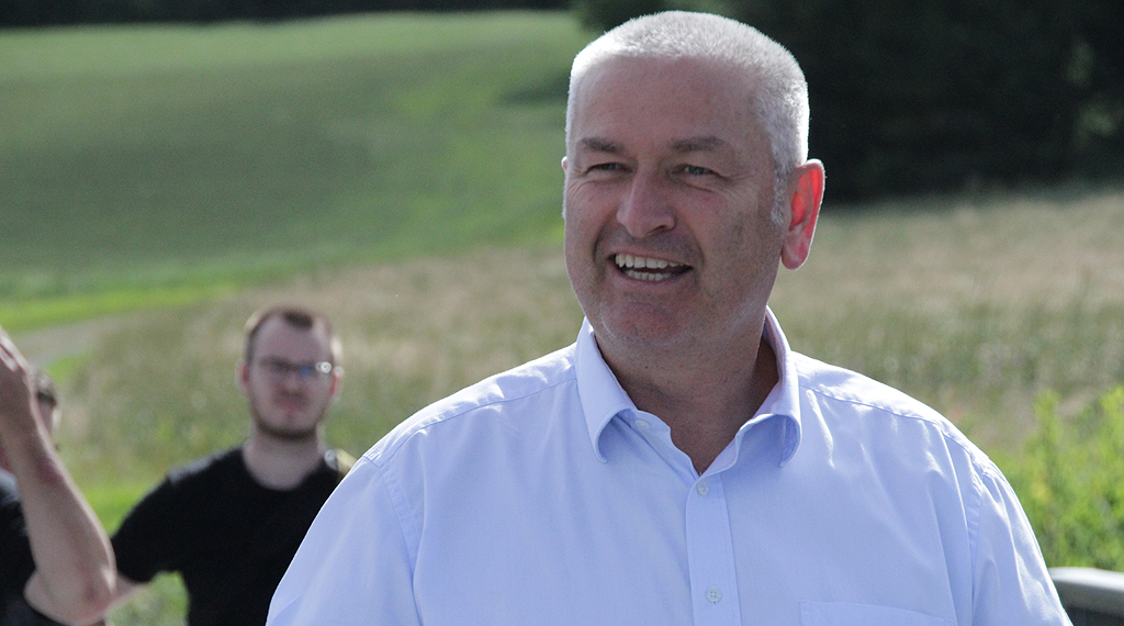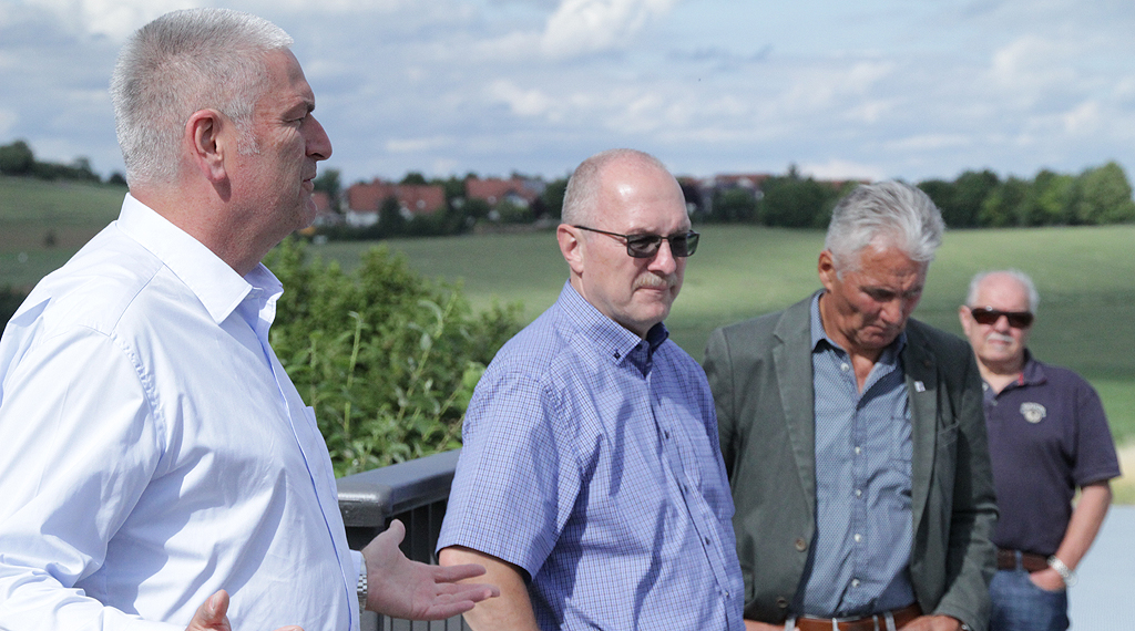 „Heute können wir die Brücke, die im Dezember 2017 durch eine Verkehrsunfall so stark in Mitleidenschaft gezogen wurde, sodass ein gefahrloses Überqueren nicht mehr gewährleistet werden konnte“, so Landrat Bernd Woide, der sich bei den verantwortlichen Kreisgremien – für die CWE-Kreistagsfraktion war Fraktionsvorsitzender Thomas Grünkorn anwesend - für das Bereitstellen der Fördermittel, die zur Verfügung gestellt werden konnten, sowie beim Hessen Mobil Straßen- und Verkehrsmanagement bedankte. „Ein schöner Tag, dass wir die Brücke heute einweihen können“, so Woide, der anfügte: „Wir leben in besonderen Zeiten. Die Frage ist eben auch – und da schaue ich zu Herrn Wöbbeking als Regionaler Bevollmächtigter Osthessen: was macht die Öffentliche Hand eigentlich? Wir als Landkreis Fulda haben eigentlich immer zwei Schwerpunkte bei den Investitionen – das sind einmal unsere Schulen - aber gerade eben auch der Kreisstraßen.“ Woide bekundete am Freitag, dasss man das Investitionsvolumen, das den Kreisstraßenbau anbetrifft, beibehalten wolle. „Wir halten unsere Kreisstraßen gut in Schuss“, stellte der Landrat am Freitag heraus. „Ich glaube, das kann man sagen; das ist auch nicht überheblich. Natürlich gibt es immer Dinge, die man angehen kann, da sind wir kontinuierlich dabei, das alles aufzuarbeiten. Wir wenden hierfür auch Mittel auf und wenn uns das Land Hessen weiterhin mit Fördermittel unterstützt, wie das in der Vergangenheit der Fall gewesen ist, dann werden wir die Investitionsvolumina auch halten können. Wir wollen natürlich auch immer Investitionsanreize setzten, ganz so nach dem Credo: Was kann die öffentliche Hand? Allen, die dazu beigetragen haben, dass wir dieses Werk heute offiziell in Dienst nehmen können, ein absolutes Dankeschön. Glück auf! Es möge diese Brücke viel länger halten, als die alte – das wünsche ich an dieser Stelle mit einer besonderen Akzentuierung“, so Woide.