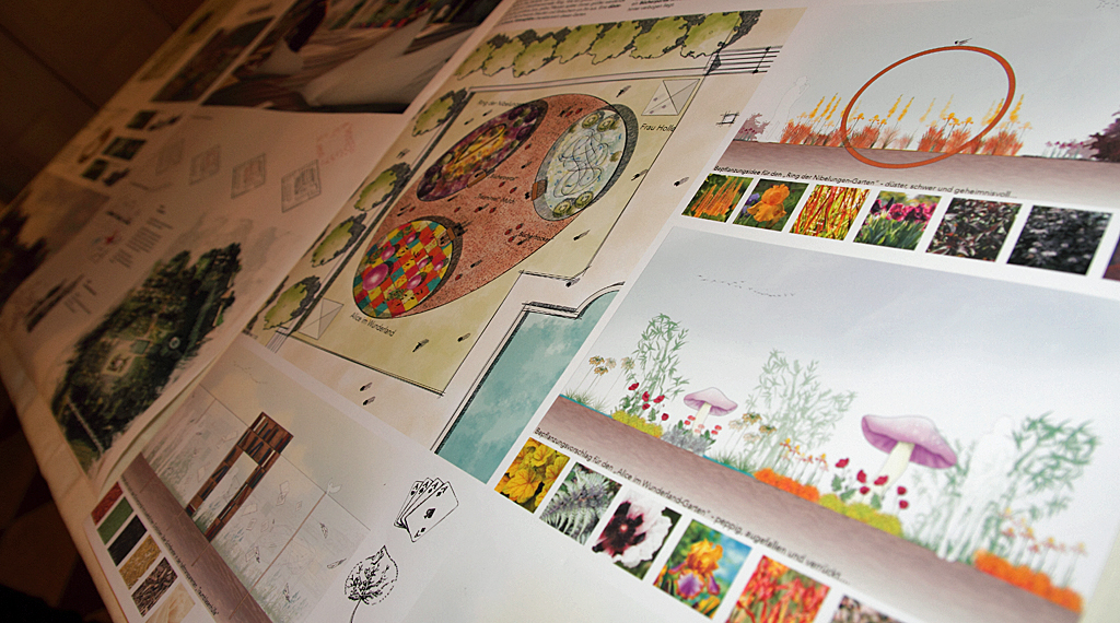 Insgesamt zehn Juroren, darunter die Vorsitzende des Landesverbandes Hessen, der Deutschen Gesellschaft für Gartenkunst und Landschaftskultur (DGGL), Petra Hirsch, Projektleiterin des fürstlichen Gartenfestes, Anja Heil sowie Jonas Reif, verantwortlicher Redakteur der Fachzeitschrift „Gartenpraxis“ und Museumsdirektor Dr. Markus Miller, hatten die Aufgabe, aus 16 eingereichten Entwürfen, die drei besten zu küren. Unter den 16 eingesendeten Entwürfen, waren 12 von Studenten der Landschaftsarchitektur. Dabei konnten zwei Studenten der technischen Universität Dresden und die Universität Kassel, mit herausragenden Ergebnissen, überzeugen. Der erste Entwurf, der es aufs Siegertreppchen schaffte, war: „Phantasie. Wenn Träume fliegen lernen“, die beiden anderen Konzepte trugen den Namen: „Im eigenen Nest“ und „Oase“. Inspirieren ließen sich die Studenten vom Leitgedanken „Lieblingsplätze“, der als Motto beim Schaugartenwettbewerb fungierte.