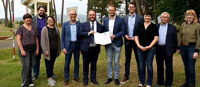 Unter dem Motto „Wenn die Spurensuche zur Zukunftsperspektive wird“ hatte das Vorstandsteam, bestehend aus Benedikt Stock und Philipp Metzler, der Jury die Konzepte vorgestellt. Die Auszeichnung sei, so Stock, „eine große Ehre und ein Lohn für den Einsatz des gesamten Teams.“ Gemeinsam mit Landtagsabgeordnetem Sebastian Müller (CDU), Rasdorfs Bürgermeister Jürgen Hahn sowie Vertretern des Fördervereins bedankte sich Stock beim Land Hessen für die anhaltende Unterstützung.
