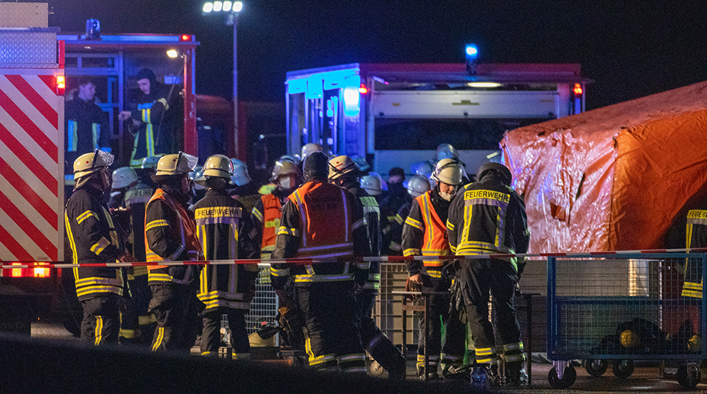 Ein Großaufgebot der Feuerwehr mit rund 150 Einsatzkräften rückte an, um den brennenden Lkw und die ebenfalls in Flammen stehende gefährliche Ladung zu löschen. Sicherheitshalber wurden beiden Fahrtrichtungen gesperrt und die Bevölkerung der angrenzenden Ortschaften wegen der eventuell entstehenden giftigen Rauchschwaden gewarnt. Vorsichtshalber wurden auch die beteiligten Einsatzkräfte sowie ein vom Rauch beaufschlagter Streifenwagen entsprechend gereinigt.