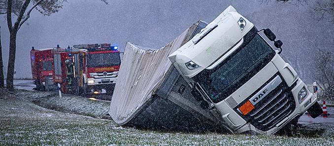 Dr. Sven Holland, Kreisbrandinspektor: „Die Feuerwehr ist heute zu einem umgestürzten Lkw gerufen worden in Form eines Gefahrguteinsatzes. Bei der Erkundung hat sich ergeben, dass Gefahrstoffe als Stückgut in dem Lkw verladen sind. Der Lkw ist durch noch ungeklärter Ursache auf der Landstraße abgekommen, in den Graben gekommen und auf die Seite gestürzt. Dabei ist auch die Ladung entsprechend umgestürzt.“ Die Ladung muss nun aufwendig geborgen werden. Diese Bergung stellt sich als nicht so einfach heraus, denn bei der Ladung handelt es sich um ein Kunststoffgranulat, genau genommen um Polymerkügelchen, die aufgebläht werden können. „Die sind sehr klein und mit Kohlenwasserstoff durchsetzt. Das heißt: Man kann diese Ladung nicht einfach mit einem Staubsauger absaugen. Man kann diese Säcke auch schwer bewegen, da sie über eine Tonne wiegen“, so Dr. Sven Holland. Mit einfachen Mitteln kann man diese Ladung nicht bergen, erklärt der Kreisbrandinspektor. „Die Bergung wird noch andauern“, so Dr. Sven Holland. Von dem Stoff an sich würde in dieser Form unmittelbar keine Gefahr ausgehen. „Aber sobald daran hantiert wird, muss man sehr vorsichtig umgehen, weil brennbare Dämpfe freigesetzt werden könnte“, so Holland.