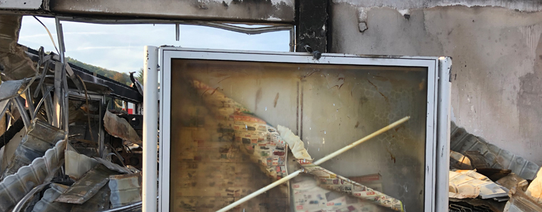 Gelände des Normamarktes in Schlüchtern nach Brand noch in einem wüsten Zustand