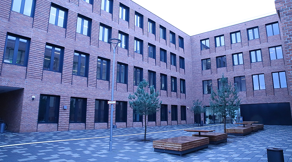 Das Gelände der ehemaligen Mühle Heyl umfasst die Sanierung der denkmalgeschützten Gebäude 53 und 54 sowie zwei neu errichtete Innenhöfe. Mit den Baumaßnahmen wurde der Campus um rund 5.200 Quadratmeter Nutzfläche erweitert und moderne sowie barrierefreie Lehr-, Labor-, Büro- und Sporträume geschaffen. Der Fachbereich Gesundheitswissenschaften und der Hochschulsport haben die neuen Räume bereits Ende 2022 bezogen. „Durch die Campuserweiterung bietet der Fachbereich Gesundheitswissenschaften der Hochschule Fulda nun ideale Rahmenbedingungen für das Studium mit einer im bundesweiten Vergleich beispielgebenden Ausstattung für die praktische Ausbildung in der Hebammenkunde, der Physiotherapie und den Pflegewissenschaften“, erklärte Hochschulpräsident Khakzar. „Mit den neuen Möglichkeiten im Hochschulsport wird die Hochschule Fulda als Studienstandort für alle Studierenden noch attraktiver. Insgesamt stärkt die Campuserweiterung das Profil der Hochschule Fulda im Bereich Gesundheit und Lebensqualität. Nicht zuletzt wurden auch hervorragende Voraussetzungen für die interprofessionelle Ausbildung von Studierenden der Pflegewissenschaften, der Hebammenkunde und der Medizin geschaffen, die der zukunftsweisenden Kooperation mit der Philipps-Universität Marburg und dem Klinikum Fulda zugutekommen werden.“