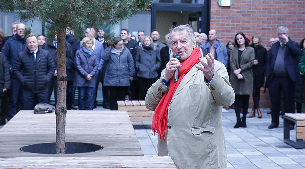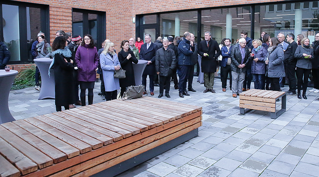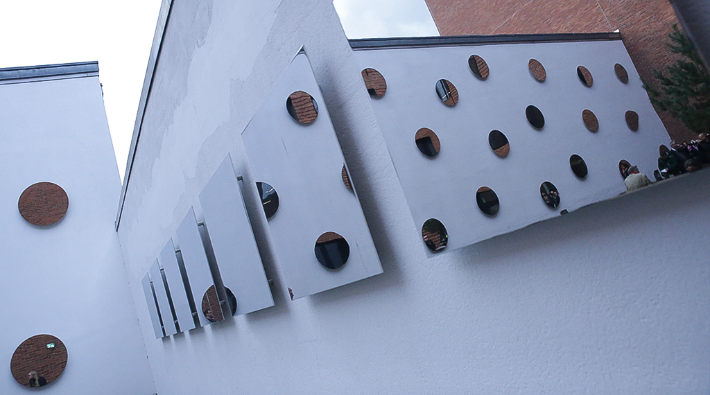Fuldas Oberbürgermeister Dr. Heiko Wingenfeld, der die Grüße und Glückwünsche der Stadt und des Landkreises überbrachte, sprach mit Blick auf die Campuserweiterung von einem „wegweisenden Projekt“ für den Hochschulstandort Fulda. Der wachsenden Hochschule in einer wachsenden Stadt biete der historische Gebäudekomplex der ehemaligen Mühle „fantastische Chancen, dass die Hochschule für Studierende ebenso wie für Dozentinnen und Dozenten weiter an Attraktivität gewinnt.“ Dass dabei durch den überzeugenden architektonischen Ansatz auch der Denkmalschutz zu seinem Recht komme und die vielschichtige Historie des Gebäudes sichtbar werde, sei auch ein Geschenk im Sinne einer nachhaltigen Stadtentwicklung, so der Oberbürgermeister. Im hinteren Innenhof des Gebäudes 53 hat sich der Fuldaer Künstler Franz Erhard Walter mit 24 spiegelähnlichen Scheiben und sieben weiteren Quadraten verwirklicht. Die 24 Scheiben stehen dabei für die Zeit (1 Tag = 24 Stunden); die sieben Quadrate für die sieben Tage der Woche. +++ pm/ja