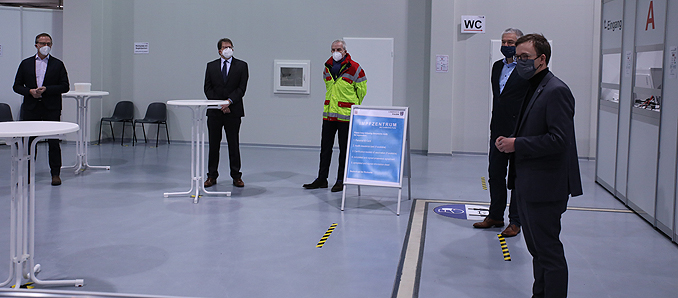 Am frühen Morgen hatten Bernd Woide und Frederik Schmitt gemeinsam mit Oberbürgermeister Dr. Heiko Wingenfeld und Gesellschaftern der Betreiber-GmbH das Impfzentrum offiziell eröffnet. „Wir freuen uns, dass wir heute in Fulda mit den Impfungen beginnen können“, sagte der Landrat und ergänzte auch angesichts manch kritischer Stimmen: „Wir sollten uns alle einmal vergegenwärtigen, wie schnell Wissenschaft und Forschung mit der Entwicklung der Impfstoffe gewesen sind. Im Sommer vergangenen Jahres hat doch kaum jemand damit gerechnet, dass es so schnell gehen würde.“ Die Impfung sei nicht nur berechtigter Grund zur Hoffnung, sondern die einzige Chance, die Pandemie wirksam zu entschärfen und vor allem den Hochrisikogruppen und ihren Angehörigen Sicherheit zu geben. In diesem Zusammenhang informierte Frederik Schmitt über das Netzwerk der Impflotsen, dass der Landkreis Fulda in Zusammenarbeit mit den Städten und Gemeinden geknüpft hat: „Es ist das Ziel, für jeden älteren Menschen, der keine eigene Möglichkeit hat, zum Impfzentrum zu gelangen, vor Ort eine Fahrgelegenheit zu organisieren.“