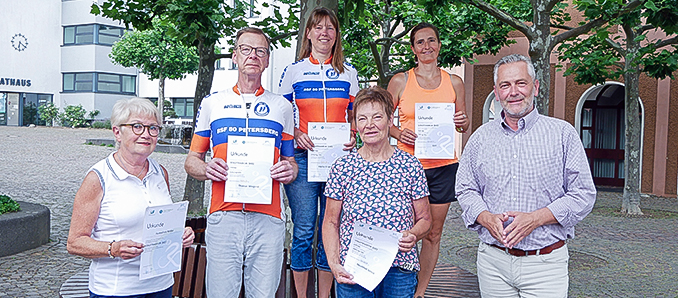 Die Gemeinde Petersberg hat in diesem Jahr zum ersten Mal an der Aktion Stadtradeln teilgenommen. Gefahren wurde drei Wochen lang, vom 13. Mai bis zum 2. Juni. Bürgermeister Carsten Froß hat nun die erfolgreichsten Radler und Teams ausgezeichnet. Bei dem Wettbewerb Stadtradeln geht es darum, 21 Tage lang möglichst viele Alltagswege mit dem Fahrrad zurückzulegen – zur Arbeit, zum Bäcker, zur Kita, zur Schule oder zum Training. Dabei ist es egal, ob man bereits jeden Tag fährt oder bisher eher selten mit dem Rad unterwegs ist. Die Bürgerinnen und Bürger sind dem Aufruf der Gemeinde gefolgt, wie die Bilanzzahlen beweisen: 128 Radelnde in 18 Teams haben insgesamt 27.047 Kilometer zurückgelegt. Dadurch sind vier Tonnen CO2 eingespart worden.