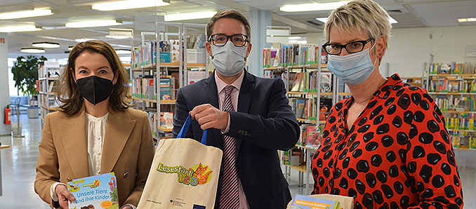 Das Programm Lesestart bietet altersgerechte Angebote für Kinder im Alter von einem, zwei und drei Jahren. Die ersten beiden Sets sind in teilnehmenden Kinderarztpraxen zu bekommen, das dritte Set in der Bücherei vor Ort. Bürgermeisterin Monika Böttcher ist überzeugt, dass dieses niederschwellige Angebot eine gute Wirkung erzielt. Denn das Programm ist darauf ausgerichtet, insbesondere leseferne Familien zu motivieren, Vorlesen und Erzählen in ihrem Alltag zu verankern.