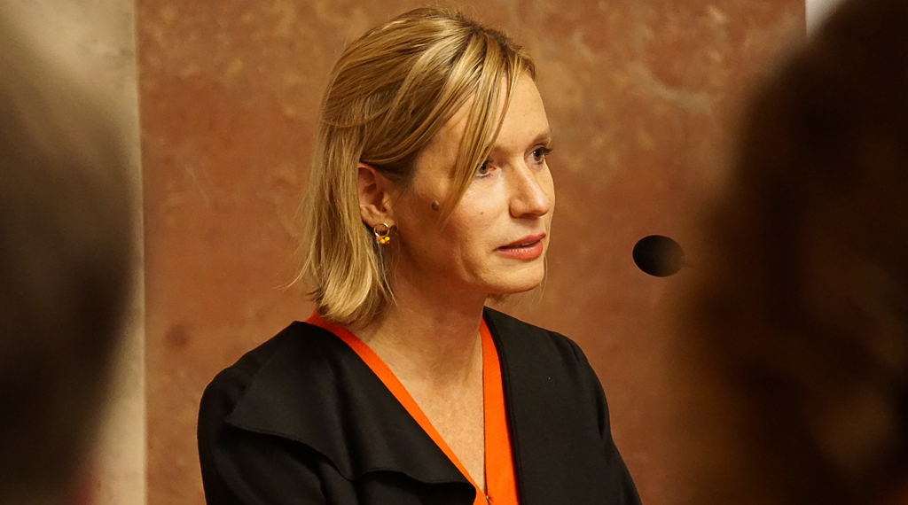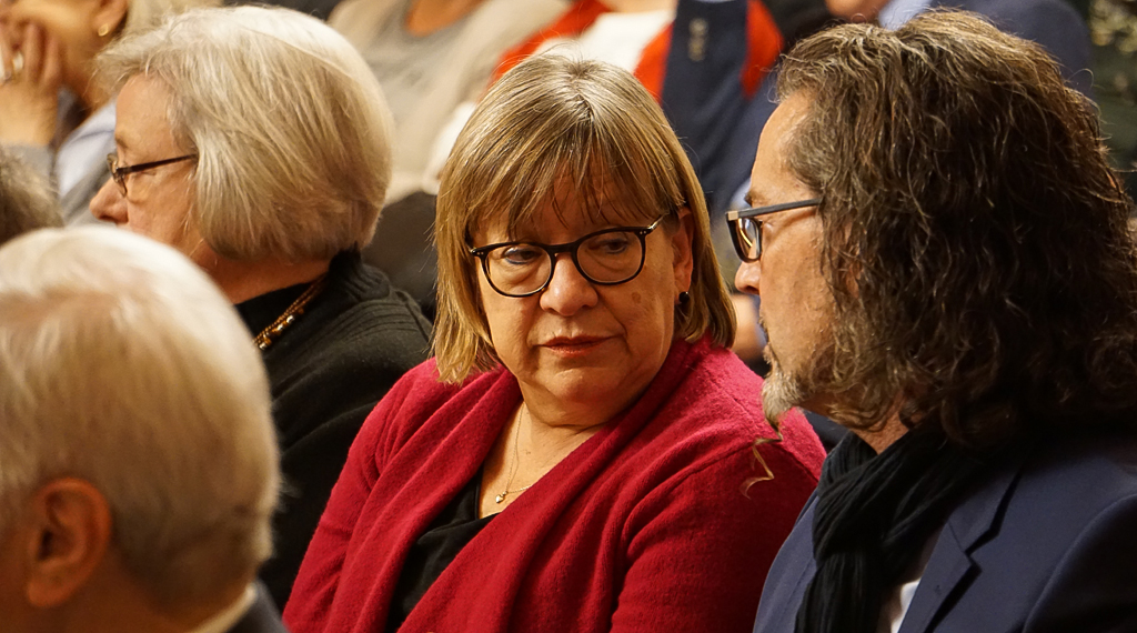 Géraldine Schwarz bedankte sich für die große Ehre, die ihr mit dem Winfried-Preis, der ihrer Meinung nach in der Vergangenheit an bedeutende Persönlichkeiten verliehen wurde, die „Großes im Leben“ geleistet haben, heute Abend noch einmal zuteilgeworden sei. In ihrer Erwiderung sprach sie von ihrem Erstlingswerk, als eine Ermutigung, etwas in die Gesellschaft hineinzutragen, „ihr etwas mitzugeben“. Etwas mehr Wissen in die Gesellschaft hineinzutragen, diese Aufgabe sei gewiss keine leichte. „Manchmal fühle ich mich entmutigt“, sagte Géraldine Schwarz bei der Preisverleihung. Die Unwissenheit der Menschen über die Geschichte, die sie insbesondere dann vernehme, wenn sie auf Schülerinnen und Schüler in Deutschland und Frankreich trifft, würde sie sprachlos machen. „Aber auch in bürgerlichen Kreisen, in denen die individuelle Verantwortung, für die ich in meinem Buch einstehe, beschränkt ist, denn sie beschränkt sich auf das allgemeine Erbe, das wir bewahren und unseren Kindern hinterlassen wollen; Für eine Welt, die nicht zur Klimahölle werden darf“, sagte Géraldine Schwarz, Preisträgerin des Winfried-Preises der Stadt Fulda 2019 beim Festakt zur offiziellen Urkundenverleihung des Preises heute in Fulda.