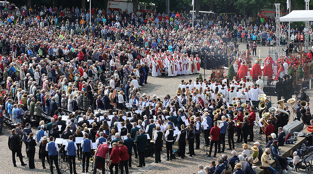 Mehrere tausend Gläubige waren bereits in der Nacht oder am frühen Morgen aus dem Fuldaer Land, der Rhön und anderen Teilen des Bistums nach Fulda gepilgert. Der Gottesdienst auf dem Domplatz bildete den feierlichen Auftakt der diesjährigen Bonifatiuswallfahrten und stand angelehnt an das Leitwort des Heiligen Jahres unter dem Motto „Pilgernd in der Hoffnung unterwegs“.