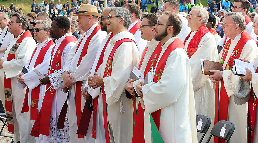 Bischof Gerber erinnerte zu Beginn seiner Predigt an ein Bild, das ihn bei der Amtseinführung von Papst Leo XIV. in Rom tief bewegt habe: Auf dem Petersplatz hätten viele der Mächtigen dieser Welt beieinandergesessen, die sich sonst nichts zu sagen hätten. „Nur eine Momentaufnahme, ja. Aber ein Hoffnungszeichen“, sagte Gerber. Solche Momente zeigten, dass Kirche Erfahrungsräume eröffnen könne, in denen Menschen über Grenzen hinweg Gemeinschaft erleben, so der Bischof: „Das, was uns verbindet, ist immer mehr als das, was uns trennt.“