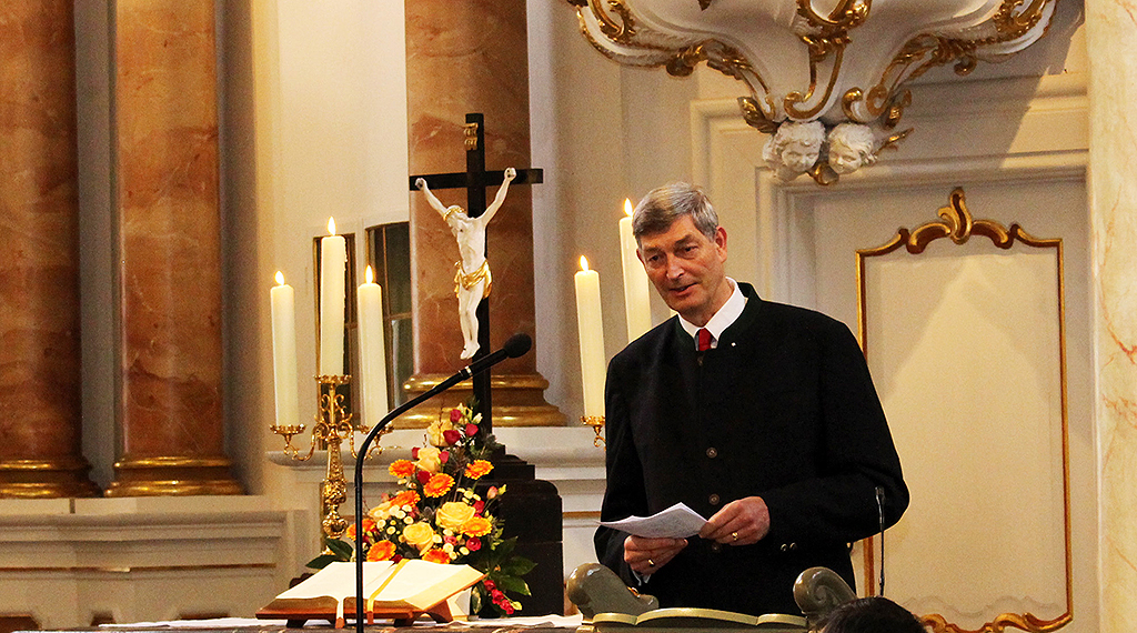 Am Sonntagmorgen kündigten Bläser des Posaunenchors auf dem Turm der Gersfelder Barockkirche einen besonderen Festgottesdienst an: Dekan Bengt Seeberg führte Pfarrer Helmut Stadal offiziell in sein Amt ein. Der 52-jährige Stradal ist Nachfolger von Pfarrer Reinhard Wachter, der im September letzten Jahres in den Ruhestand getreten war. Der Vorsitzende des Kirchenvorstands, Horst Günther, begrüßte die zahlreich erschienenen Gottesdienstbesucher.