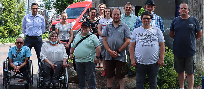 Der Gesamtwerkstattrat mit seinen Gästen vor der Sitzung – Mathias Boecken li. Vorne mit Sonnenbrille).