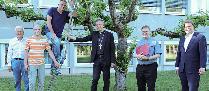 Bischof Dr. Michael Gerber dankte gestern in Fulda allen Verantwortlichen für die Initiative. „Das Stichwort ‚Gabe Gottes für die Schöpfung‘ ist für mich auch ganz persönlich ein wichtiges Stichwort“, sagte Bischof Dr. Gerber. „Mir ist die Natur sehr wichtig. Ich bin mitten in der Natur, in Gottes Schöpfung, aufgewachsen - in einer Gegend, die sehr stark vom Obst- und Weinbau geprägt ist. Mich erinnert dieser Obstgarten daher auch sehr stark an meine Heimat.“ Weiter sagte der Fuldaer Bischof: „Eine Erfahrung, die wir auch im Lockdown machen durften, die uns auch darüber hinaus begleitet, dass wir diesen Obstgarten auch nutzen für Begegnungen und Gottesdienste. Wir entdecken nochmal die Möglichkeiten, die wir haben. Gerade auch die Verbindung zwischen Spiritualität und Schöpfung, wie man sie an diesem Ort erfährt. Das kann auch eine Perspektive für die Zukunft sein. Ich sehe es daher als meine persönliche Aufgabe, den Bischofsgarten, soweit es geht, auch zugänglich zu machen den Menschen und jetzt auch den Vögeln. Im Garten nebenan haben wir kürzlich Bienenvölker angesiedelt und jetzt hier schon bald Vögel, das passt gut.“