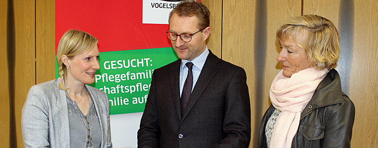 Sie wollen Pflegefamilien finden, die Kindern ein Zuhause auf Zeit geben: Nina Behnken (li.) und Ilona Beutel von der Fachstelle Pflegekinderwesen im Jugendamt im Gespräch mit Jugenddezernent Dr. Jens Mischak. Foto: Erich Ruhl-Bady