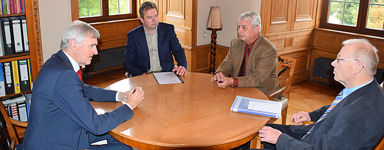 Fulda. Angesichts der dramatischen Lage in Syrien, im Gaza Streifen und des rasanten Vorstoßes radikal islamischer Kämpfer der ISIS (Islamischer Staat in Syrien und im Irak) im Nahen Osten wird deutlich, wie hochaktuell sicherheitspolitische Diskussionen sind. Mit diesen Fragestellungen beschäftigen sich die bundesweit rund 100 Sektionen der Gesellschaft für Wehr- und Sicherheitspolitik (GfW). Auch in Fulda ist die GfW mit einer eigenen Sektion vertreten, die vom 24. bis 26. Oktober Ausrichter der Versammlung des Landesbereichs IV mit Vertretern aus Hessen, dem Saarland und Rheinland Pfalz in der Domstadt, am Point Alpha sowie der Akademie Geisa sein wird. Zu einem kurzen Gedankenaustausch trafen Landesbereichsvorsitzender, General a.D. Richard Bulheller, sowie Sektionsleiter Michael Trost mit Oberbürgermeister Gerhard Möller im Stadtschloss zusammen.