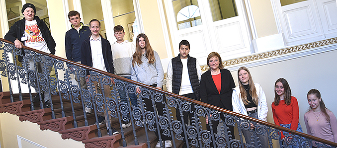 Staatsministerin Eva Kühne-Hörmann mit Teilnehmerinnen und Teilnehmern des Girls‘ and Boys‘ Days. Foto: HMdJ