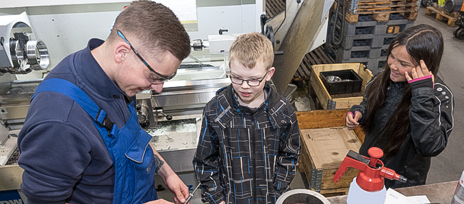 Natürlich durften die jungen Leute am Girls’ & Boys’ Day auch selbst anpacken. In kleinen Gruppen lernten sie, was man unter drehen, fräsen und montieren versteht – und sie zeigten sich dabei durchaus talentiert, fasste Hofacker abschließend zusammen: „Das Interesse an den Maschinen und an der Arbeit war groß. Es wäre wirklich schön, den einen oder anderen bei uns wiederzusehen.“ +++ [su_hinweispm]