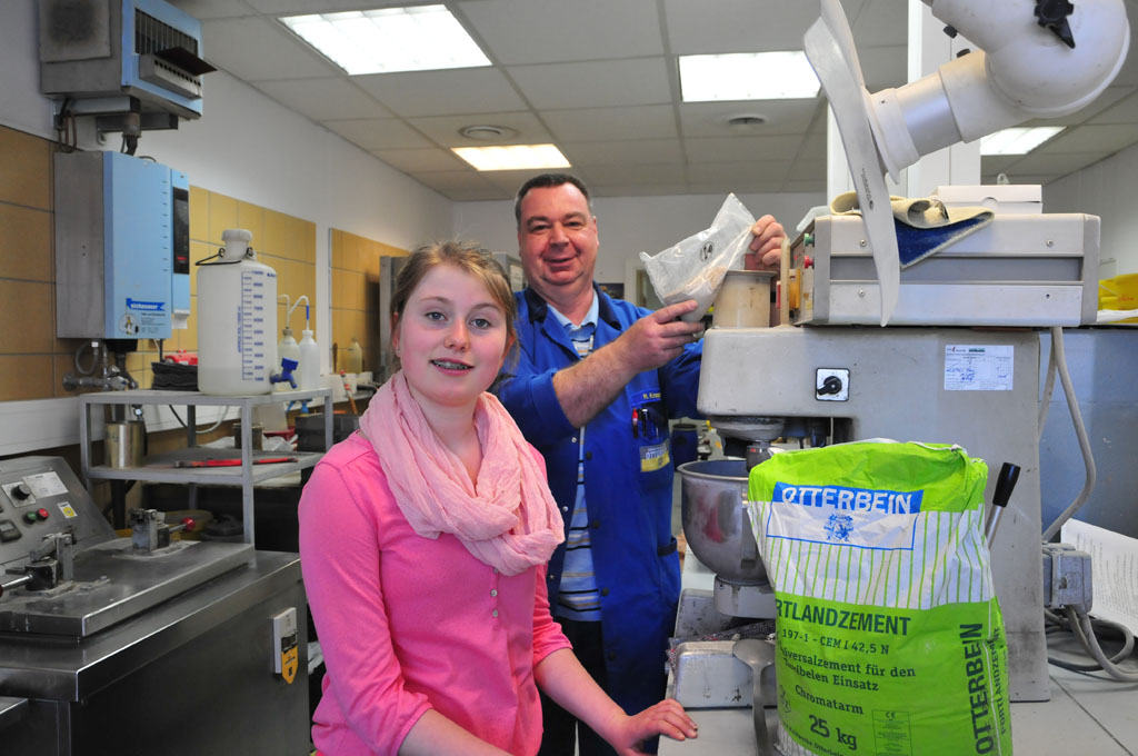 Rund um die Herstellung von Zement und Kalk drehte sich der Girls‘ Day für Julia Heinz: Die 16-Jährige erhielt bei den Zement- und Kalkwerken spannende Einblicke in die Arbeit im Labor und in der Produktion. Von Schichtlaborant Manfred Kropp erfuhr die Schülerin der Heinrich-von-Bibra-Schule, wie Zement hergestellt und geprüft wird und konnte dabei auch selbst Hand anlegen – etwa beim Abwiegen des Baustoffs oder bei der Bestimmung der chemischen Zusammensetzung. Höhepunkt war eine Führung über das weitläufige Werksgelände, bei der die junge Fuldaerin die einzelnen Schritte der Produktion verfolgen konnte.