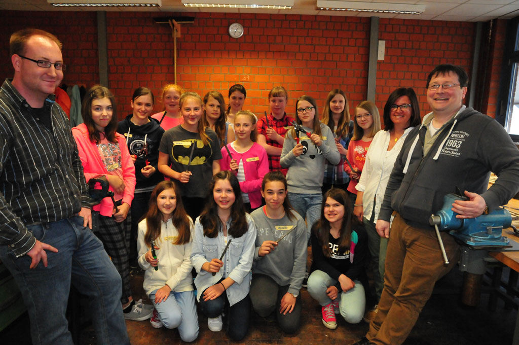 Der Girls‘- und Boy’s Day im BBZ Mitte war ein voller Erfolg: Rund 50 Schülerinnen und Schüler haben die Möglichkeit genutzt, sich einen Eindruck von den Berufen in der Metall-, Holz- und Elektrotechnik-Branche sowie im Bereich Bürowirtschaft zu verschaffen. Vom Schleifen über das Löten bis hin zum Basteln und Bemalen haben junge Mädchen ihr handwerkliches Geschick in den Werkstätten des BBZ Mitte unter Beweis gestellt. Unter fachmännischer Anleitung der Ausbilder haben die Schülerinnen im Alter zwischen zehn und 16 Jahren in den Abteilungen Metall-, Holz- und Elektrotechnik einen Briefhalter, eine Metallblume oder eine drehbare Solar-Sonnenblume angefertigt. Die Jungen haben die Möglichkeit genutzt, einmal in die verschiedenen Abläufe des Büroalltags hinein zu schnuppern.