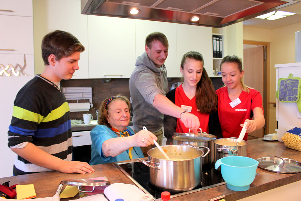 Einblick in die Hauswirtschaft und den Beruf eines Altenpflegers hatten jetzt 27 Jungen und Mädchen anlässlich des Girls‘ und Boys‘ Day in der Altenpflegeschule BBZ Mitte sowie im Pflegestift Mediana erhalten. Nach einer theoretischen Einweisung durch das Pflegepersonal wurden die Jugendlichen über Hygiene, Schweigepflicht und den Umgang mit älteren Personen aufgeklärt und verteilten sich auf die verschiedenen Wohnbereiche. Im Laufe des Tages hatten die Schülerinnen und Schüler gemeinsam mit den Bewohnern gekocht, Gesellschaftsspiele gespielt und einen Rollstuhl-Parcours bewältigt. Auch das Blutdruck- und Pulsmessen stand auf dem Programm. „Ich finde es klasse, hier in einer sozialen Einrichtung zu sein – es ist toll, wenn man Menschen helfen kann“, erklärt der Schüler Jan Jurecic.