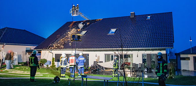 Die Temperaturen sind nach einem warmen Frühlingsintermezzo in der zweiten Wochenhälfte wieder in den Keller gerauscht, sodass die Heizungen und Öfen wieder Hochkonjunktur haben. Doch für die Bewohner eines erst acht Jahre alten Einfamilienhauses in Gleimenhain endete das Heizen am Abend in großer Aufregung. Im Bereich des Kaminrohres im Dachstuhl staute sich aus bislang noch ungeklärter Ursache die Hitze, sodass die Dämmung Feuer fing. Es ist vermutlich der modernen Bauweise des Gebäudes zu verdanken, dass die Flammen sich nur sehr langsam ausbreiten konnten. Die alarmierte Feuerwehr aus Kirtorf, die mit 60 Einsatzkräften ausgerückt war, konnte mithilfe der Drehleiter aus dem benachbarten Stadtallendorf den Brand rasch löschen. Hierzu mussten die Einsatzkräfte auch einige Ziegeln vom Dach entfernen. Die Löscharbeiten waren für die Kräfte dabei alles andere als angenehm. Starker Schneefall und leichte Minusgrade sorgten dafür, dass jeder lieber wieder rasch auf die heimische Couch ins Warme wollte. Verletzt wurde glücklicherweise niemand. Das Haus ist zur Zeit nicht bewohnbar. Die Polizei schätzt den entstandenen Schaden auf mehrere zehntausend Euro. Die genaue Brandursache muss nun ermittelt werden. +++