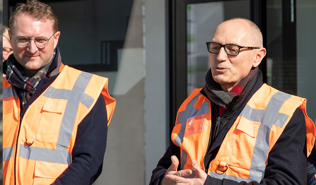 Für das holzverarbeitende Unternehmen, das den Standort bei Wallenrod in den Jahren 2008/2009 komplett neu errichtet hatte, ging ein ebenso alter Wunsch in Erfüllung. Gernot Hormeß, Geschäftsführer der Pfeifer Holz GmbH, und Andreas Schmid, Geschäftsführer und Werksleiter, bedankten sich beim Lokalaugenschein auf dem neuen Güterbahnhof für die gute Zusammenarbeit mit allen beteiligten Behörden und Baufirmen. Hormeß: „Das Vorhaben wurde lange Zeit intensiv diskutiert. Aber nun wird das Ergebnis für Umwelt, Anrainer und unsere Rohstoffversorgung wesentliche Entlastung bringen.“ Vor einer interessierten Abordnung aus Lokalpolitikern sprach auch Lauterbachs Bürgermeister Rainer-Hans Vollmöller von einem großen Tag: „Die Zusammenarbeit mit der Firma Pfeifer erfolgt stets offen und partnerschaftlich. Ihre Bemühungen, den Standort immer weiter zu verbessern, reflektieren auf die gesamte Region.“