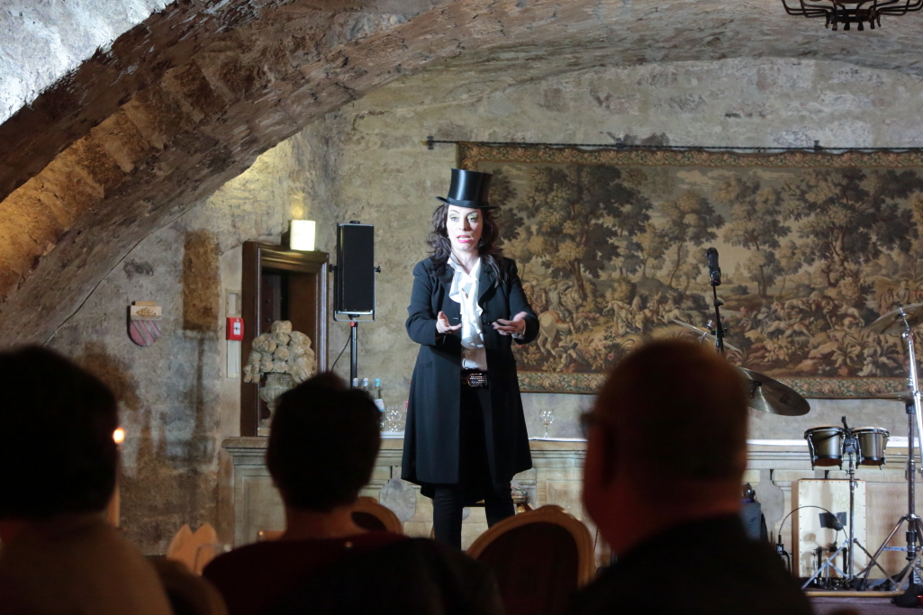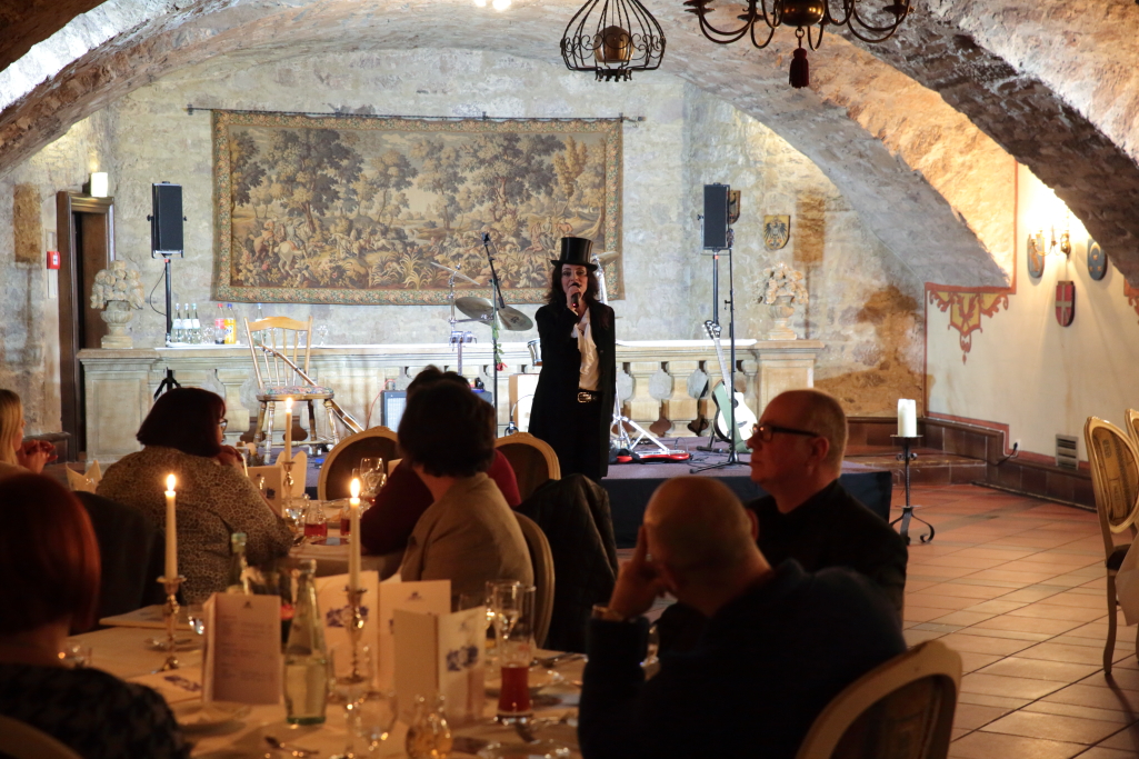 Fulda. Am Mittwochabend konnte Marianne Blum, Moderatorin und Gastgeberin der Dinner Show „Gernsehen & Abendessen“, in ihrer vorletzten Show, bevor es im Mai in die Sommerpause geht, die Würzburger Musikformation „Q.AGE“ im Wappensaal des Fuldaer Maritim Hotels begrüßen. Die vier Musiker bestehend aus Ami Lyons (Gesang), Felix Wöllmer (Gitarre, Bass), Diego Villabona (Bass) und Cosmin Marica (Perkussion), zeigten gestern Abend eindrucksvoll, wie mitreisend Eigenkompositionen sein können.