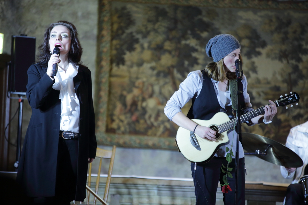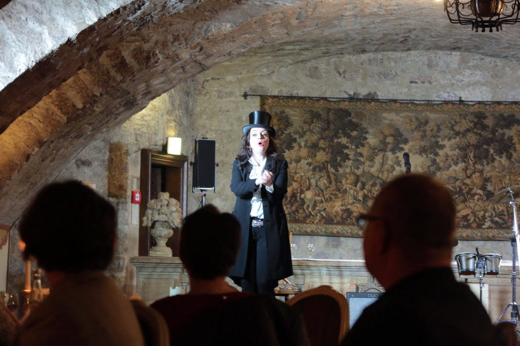 Wie Kabarettistin Marianne Blum zu Beginn ihrer Show sagte, müsse man gerade jetzt, wo man „in sehr merkwürdigen Zeiten lebt“, mehr als je zuvor „Haltung bewahren“. In diesem Zusammenhang Blum den Brexit, US-Präsident Trump und seine Vorstellung von Demokratie sowie Erdogan und dessen Nazivergleiche aufs Korn nahm. „Menschen, wie ich, sind dazu da, sich aufzuregen. Man muss Haltung bewahren in der heutigen Zeit.“ Damit die Überleitung zu den gestrigen Gästen geschaffen, kündigte Marianne Blum die Würzburger Musikformation Q.AGE an und verwies darauf, dass „handgemachte Musik“ schließlich auch eine Form des Haltung Bewahrens sei. Denn: „Wollen die Menschen auch gerne wiedererkennen und sich an längst vergangene Zeiten erinnern, so ist dies gewiss keine Form des Kulturschaffens.“
