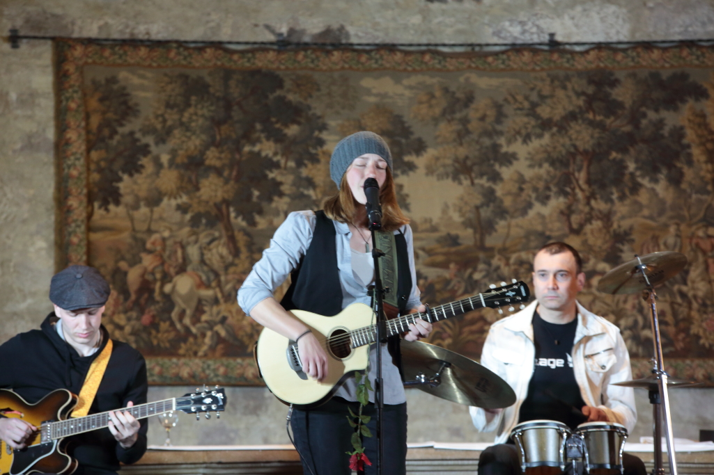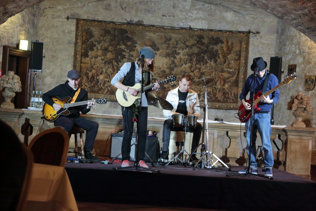 Dass die Musiker, um den in Würzburg ansässigen Bandgründer, DJ und Schlagzeuger Cosmin Marica, Kultur schaffen können, haben sie mit dem gestrigen Gastauftritt, diesen sie im Übrigen selbst als „Herausforderung“ ansehen, eindeutig bewiesen. So sehr, dass sogar das Publikum eine Zugabe einforderte. So scheint es wenig verwunderlich, dass Q.AGE auf ihrer Homepage das Motto „Love, believe, hope until you´re dirt/like you´ve never been hurt“ voranstellen. Ihre Produktionen beschreiben sie als „Musik für Freidenker, Revoluzzer und Pazifisten“. Die Band, die sonst große Festival- oder Club-Bühnen ausfüllt, hat beim gestrigen Gernsehen-Publikum Eindruck hinterlassen. Und das, obwohl sie sich klanglich an das mittelalterliche Ambiente des Wappensaals anpassen mussten und daher nur sehr verhalten performten.