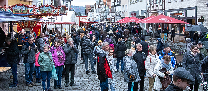 Ein buntes Angebot erwartete die Besucher beim Frühlingsmarkt am Sonntag in Lauterbach. Auch wenn das Wetter eher an Winter erinnerte, war auf den Straßen einiges los. Im Rahmen des Markts wurde auch die neue mobile Bühne eingeweiht und gleich fleißig „bespielt“. Die Besucher hatten sich warm angezogen für den Besuch auf dem Markt, denn das Wetter war alles andere als frühlingshaft. An den Ständen konnten sie ein vielfältiges Angebot entdecken. Dekorationen, Spielsachen, Klamotten, aber auch Pflanzen, Käse, Oliven und Wurst wurden verkauft. Für den Hunger zwischendurch gab es an den Ständen eine große Auswahl an herzhaften und süßen Leckereien, der Geruch von gebrannten Mandeln und Glühwein lag in der Luft und erinnerte fast ein bisschen an Weihnachten. Am Mittag wurde die neue mobile Bühne, die im Rahmen des Förderprogramms „Zukunft Innenstadt“ angeschafft worden war, offiziell eingeweiht und war danach auf gleich im Einsatz. Verschiedene Gruppen erfreuten die Gäste mit ihrer Musik. Auch an anderen Stellen in der Innenstadt wurde musiziert. Kleine Besucher konnten ein paar Runden mit dem Kinderkarussell drehen. +++