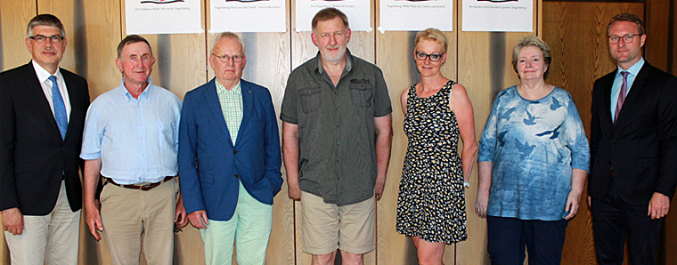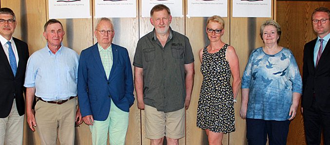 Landrat Görig und Erster Kreisbeigeordneter Dr. Mischak gratulierten den fünf Gewinnerinnen und Gewinnern und dankten darüber hinaus erneut allen 160 Einsenderinnen und Einsendern sehr herzlich „für das Einsenden der vielen guten Ideen, die alle für Heimatverbundenheit und regionales Selbstbewusstsein sprechen“, so Dr. Mischak.