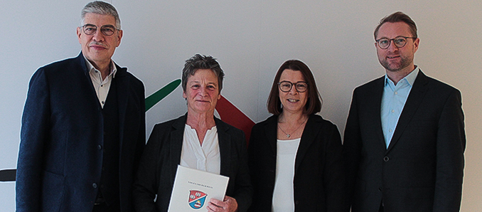 Landrat Manfred Görig und Erster Kreisbeigeordneter Dr. Jens Mischak verabschieden gemeinsam mit Amtsleiterin Anja Püchner die langjährige Mitarbeiterin Marion Schindler (Zweite von links) in den Ruhestand. Foto: Sabine Galle-Schäfer