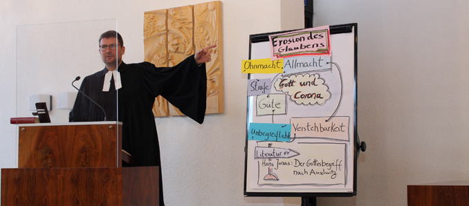 In seiner Predigt führte Lange weiter aus, dass von der akademischen Theologie keine Antworten auf den Umgang mit der Pandemie zu erwarten seien. Den Gedanken, dass Gott die Menschen durch Covid 19 strafen wolle, könne man zwar aus dem Bild des strafenden Gottes des Alten Testaments ableiten. Diese Idee sei modernen Menschen allerdings fremd: „An einen solchen Gott möchte heute niemand mehr glauben.“ Vielmehr gehe es darum, Gottes Wirken gerade auch in leidvollen Situationen zu erfahren.