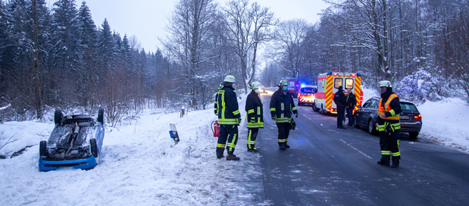 Zwischen Grebenhain und Hartmannshain kam eine Frau gegen 16.20 Uhr auf schneeglatter Fahrbahn ins Schleudern und überschlug sich mit ihrem Auto. Glücklicherweise wurde sie nur leicht verletzt. Eine 22-jährige Frau aus Mainz befuhr die Straße von Grebenhain kommend und verlor die Kontrolle über ihren Wagen. Sie kam ins Schlingern und nach links von der Fahrbahn ab gegen einen Schneehaufen, wodurch sich ihr Wagen überschlug. Er blieb auf einer Wiese liegen, die Fahrerin wurde durch Ersthelfer befreit. Die Feuerwehr Grebenhain war schnell mit 26 Einsatzkräften vor Ort, die Frau wurde mit leichten Verletzungen zur Beobachtung ins Lauterbacher Krankenhaus gebracht. Die extrem glatte Strecke war kurzzeitig voll gesperrt, wurde aber schnell wieder freigegeben. +++