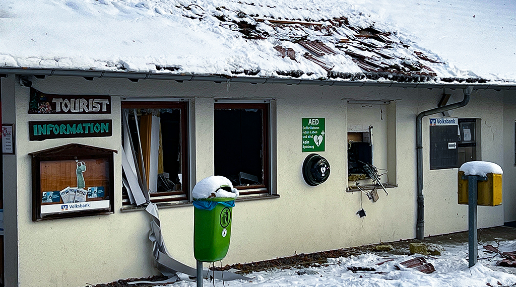 Nach derzeit vorliegenden Erkenntnissen sprengten mehrere dunkel gekleidete Täter einen dortigen Geldautomaten auf. Ob sie in der Folge Bargeld an sich nahmen ist noch unklar. Auch die Höhe des durch die Sprengung entstandenen Sachschadens ist derzeit noch unbekannt. Die Täter flüchteten anschließend in einem dunklen Pkw.