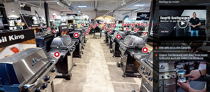 Auf einer virtuellen Fläche von rund 1.400 qm können sich Grillbegeisterte ab sofort durch den weltweit ersten virtuellen Grillfachhandel bewegen, der neben interaktiven Kommunikationsmöglichkeiten auch echte 1:1 Fachberatung bietet. Die auf der virtuellen Verkaufsfläche ausgestellten Produkte verfügen über anklickbare Infopoints, die erste Informationen liefern und zu den jeweiligen Produktseiten im Grillfürst Onlineshop verlinken. Ergänzend dazu bieten vorproduzierte Produkt- und Kaufberatungsvideos nützliche Tipps von Fachberatern und helfen bei der Entscheidungsfindung. Doch damit nicht genug: Um das Einkaufserlebnis noch individueller zu gestalten und der persönlichen Beratung im stationären Fachhandel in nichts nachzustehen, können echte Grillfürst-Berater beim Schlendern durch die virtuelle Filiale jederzeit für eine 1:1 Beratung per Live-Video-Übertragung hinzugeschaltet werden.