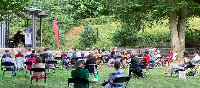 Das Publikum genoss sichtlich ein großartiges Konzert. So mancher Passant blieb auch weiter hinten im Park stehen und lauschte den zarten Klavierklängen vom Pavillon. „Das müssen wir weitererzählen.“, bemerkten zwei Zuhörerinnen, die als Touristen in der Stadt waren. „Eine traumhafte Ruhepause im Park mit herrlicher Musik.“, schwärmten andere.