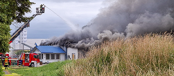 Die Feuerwehr kann die Halle derzeit nur von außen bekämpfen. Ein Betreten sei zu gefährlich: Die Konstruktion aus Stahlträgern sei durch die enorme Hitze – über 1.000 Grad Celsius – in ihrer Stabilität bedroht. „Ein Einsturzrisiko können wir nicht ausschließen“, so ein Sprecher der Einsatzkräfte.