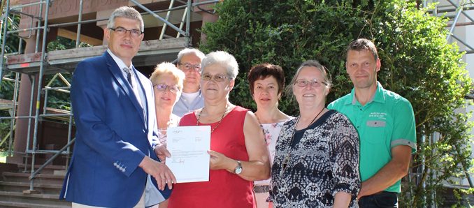 Sickendorf. Landrat Manfred Görig überbrachte 10.000 Euro, die nun mithelfen, die Sanierung eines kulturhistorisch einzigartigen Kleinods in Sickendorf voranzutreiben. Der Landrat hatte sich bei der OVAG für die Spende starkgemacht, „weil die Heidbergkapelle für die Region kulturell und historisch eine wirkliche Perle ist“. Christel Bäuscher und Klaus Rockel vom Kirchenvorstand sowie Pfarrerin Christine Müller bedankten sich herzlich für die großzügige Unterstützung. „Ohne die ehrenamtliche Tatkraft der Bürgerinnen und Bürger vor Ort, die damit die Kultur ihrer Heimat sichern, wäre solch ein Großprojekt gar nicht durchführbar“, lobte der Landrat die Aktiven und die Unterstützer, zum Beispiel durch Spenden und andere Hilfen.