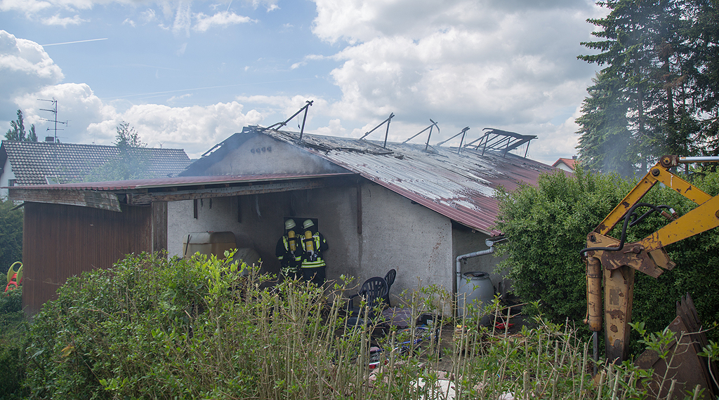 Der Besitzer einer Scheune im Fliedener Ortsteil Rückers hatte im angrenzenden Wohnhaus Büroarbeiten erledigt, als er einen lauten Knall vernahm. Kurz darauf drang dichter Rauch aus seiner Scheuen. Alle Löschversuche mit einem Feuerlöscher schlugen fehl. Als die alarmierte Feuerwehr eintraf, brannte die etwa 15 x 10 Meter große Scheune bereits in Vollbrand. In dem Gebäude war die private Werkstatt des Eigentümers untergebracht, wo er an Motorrädern und Fahrzeugen bastelte. Auf dem gesamten Dach befand sich eine große Photovoltaikanlage. Das Gebäude brannte komplett aus. Der Feuerwehr gelang es aber zum Glück das unmittelbar danebenstehende Wohnhaus vor den Flammen zu bewahren. Die Ursache des Brandes ist noch unklar. +++