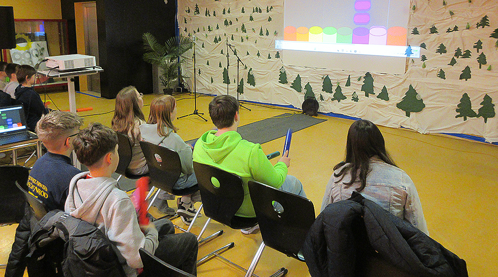 Auch sportlich und musikalisch war einiges geboten. In der Kreissporthalle warteten verschiedene Mitmachaktionen auf die jungen Besucher. Für besondere Stimmung sorgten die musikalischen Darbietungen der Gitarren-AG unter der Leitung von Peter Schmuck sowie die beiden Boomwhacker-Aufführungen der Klassen H6 und H8 unter der Leitung von Constantin Kuhn. Technikbegeisterte staunten über die Ergebnisse der AG LEGO-Robotic und die moderne IT-Ausstattung der Schule, die bei den jungen Gästen besonders gut ankam.
