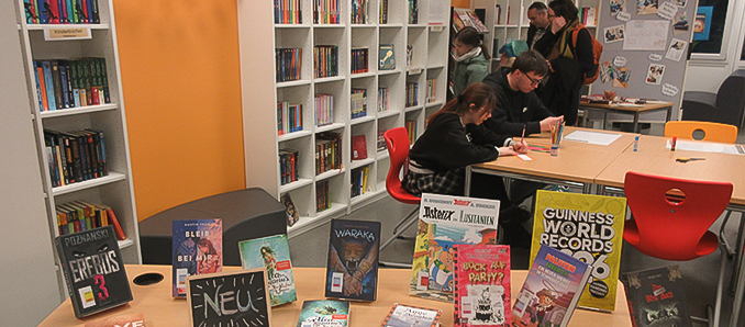 In den Kunsträumen wurde eifrig gebastelt, begleitet von einer großen und abwechslungsreichen Kunstausstellung. Der Werkraum verwandelte sich in eine Mitmachwerkstatt, während die AG Elektrotechnik echte Technikluft schnuppern ließ: Unter Anleitung der beiden AG-Leiter lernten die Besucher die Welt des Lötens kennen und konnten ein eigenes „Licht zum Mitnehmen“ herstellen. In der Mediathek ging es kreativ weiter – hier wurden Lesezeichen gebastelt, liebevoll gestaltete Kästen passend zu Büchern ausgestellt und eine bunte Vielfalt an Kinder- und Jugendliteratur präsentiert.