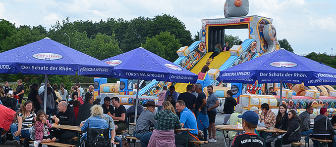Das Außengelände der Reitsportanlage glich einem Jahrmarkt mit vielen Attraktionen. Eine riesige Hüpfburg, Bullriding, Bastelaktionen, Kinderschminken und Ponyreiten ließen die zahlreichen Kinderherzen höher schlagen. In einer kleinen „Fressmeile“ wurden die Gäste mit allerlei kulinarischen Köstlichkeiten verwöhnt. DJ Patrick Dzwonek sorgte beim Pferdefest den ganzen Tag über für flotte Unterhaltungsmusik und unterhielt die Gäste immer wieder mit „spritzigen“ Worten.