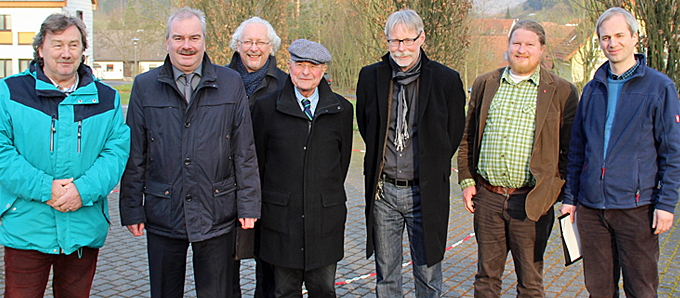 Jugendhilfeverbund-Leiter A. Heil, Caritasdirektor M. Juch, Caritas-Vorstand M. Crome, N. Rücker, Flüchtlingsbeauftragter F. Meyer, sowie vom Jugendhilfeverbund C. Schneider und M. Seifert. (v.l.)