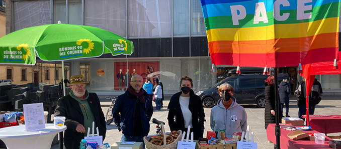Zwei intensive Wochen liegen hinter den Aktiven des Stadtverbands Bündnis 90/Die Grünen. Sehr früh wurde die Idee geboren, beim Markt der Solidarität am 12. März Hilfe für die Ukraine zu organisieren. Das Ergebnis ist großartig: Über 1.050 Euro an Spendengeldern wurden gesammelt, die für den Einkauf von Care- und Hygieneartikeln verwendet wurden. Und tegut spendierte obendrein eine Palette mit Babynahrung für die allerkleinsten Opfer des Kriegs. Die notwendigen 80 Kartonagen spendete DS Smith Packaging Deutschland.