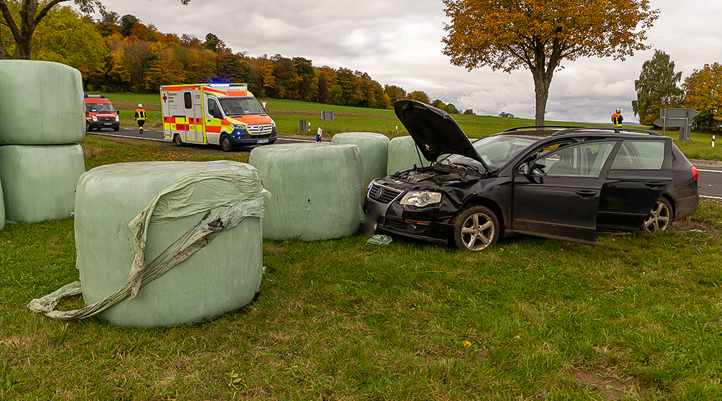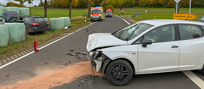 Durch die Wucht des Aufpralls prallte der Passat der 36-Jährigen in mehrere am Straßenrand gelagerte Siloballen. Insgesamt wurden bei dem Unfall sechs Personen verletzt, darunter drei Kinder im Alter von acht, vier und zwei Jahren. Die 36-jährige Fahrerin sowie die drei Kinder wurden zur weiteren medizinischen Versorgung ins Klinikum Fulda gebracht. Die 22-jährige Seat-Fahrerin und ihre 18-jährige Beifahrerin kamen in die Klinik nach Lauterbach.