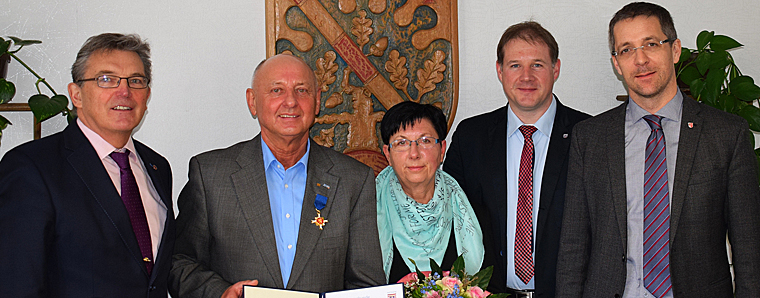 „Ihre jahrzehntelangen leitenden Ehrenamtsaufgaben verlangen zweifellos stets einen großen persönlichen Einsatz. Ich danke Ihnen für Ihre Beständigkeit und Ausdauer, wenn es darum geht, sich einzubringen und Verantwortung für das Allgemeinwohl zu übernehmen“, lobte Landrat Koch das Engagement des 66-jährigen, der bisher insgesamt 596 Jahre für ehrenamtliche Tätigkeiten investiert hat.