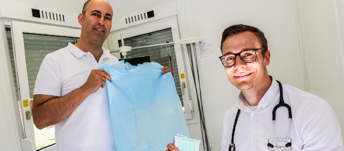Dr. Ingo Roth leitet die Praxis in Bad Soden-Salmünster. Er erklärt: „Wir hatten dafür ein Konzept ausgearbeitet. Dies ist jetzt von der Kassenärztlichen Vereinigung genehmigt worden, sodass wir diese Möglichkeit bieten können.“ Der Container diene auch dem Schutz aller restlichen Praxisgänger im gesamten Hausärzte-MKK-Verbund: „Niemand muss Sorge haben, dass er sich in einer unserer Praxen anstecken könnte. Unsere Praxen sind sicher“, sagt Roth. Das sei vor allem für diejenigen Patienten wichtig, die sich wegen der Corona-Krise nicht mehr zum Hausarzt trauen, aber auf hausärztliche Hilfe angewiesen seien. Das betont auch Dr. Davud Faghih-Zadeh, Hausärzte-MKK-Arzt in der Praxis in Schlüchtern: „Unsere Patienten wissen jetzt: Die Wahrscheinlichkeit sich anzustecken ist bei uns praktisch nicht vorhanden. Und zwar ganz egal, ob sie in die Praxis in Bad Soden-Salmünster, Schlüchtern oder Langenselbold gehen. Denn die potenziellen Corona-Patienten werden getrennt im Container in Bad Soden-Salmünster behandelt.“
